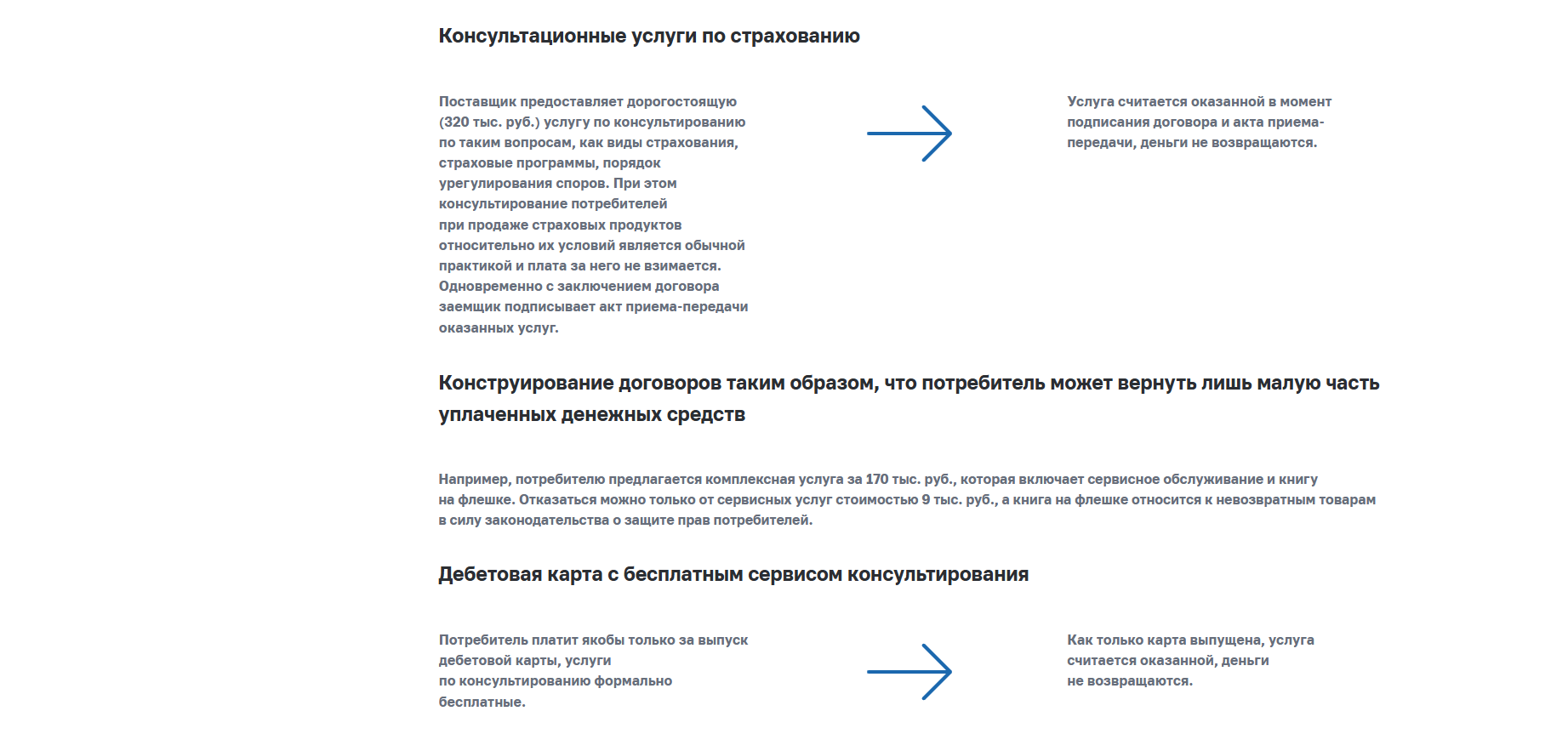 - Продажи потребителю дополнительных платных услуг, при отказе от которых денежные средства не возвращаются/возвращаются частично.